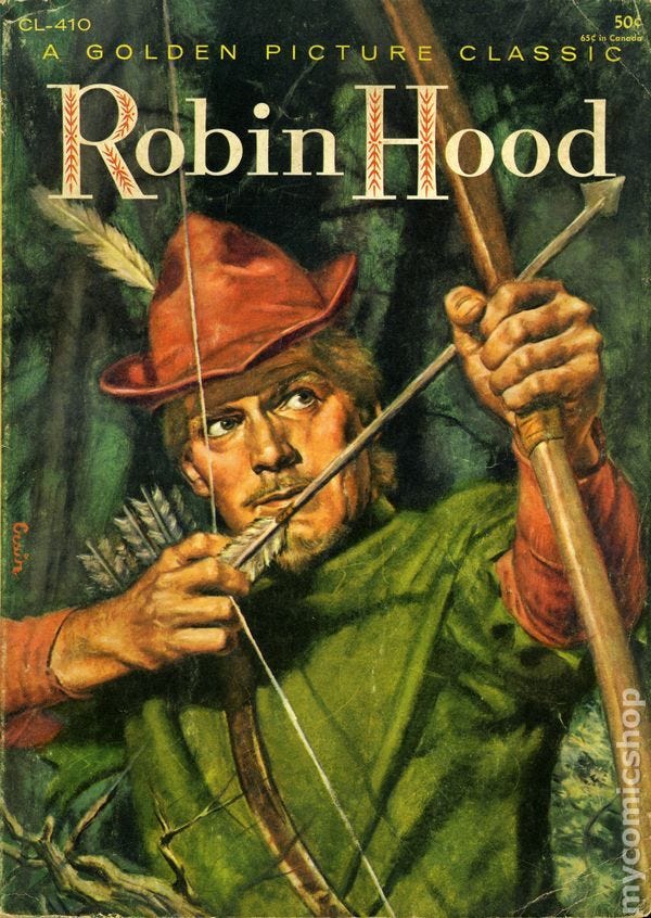 في هذا المشهد القاتم، يبرز روبن هود. لكنه لا يثور ليكون ملكاً، ولا ليبدّل النظام جذرياً – على الأقل في الحكايات المبكرة – بل يثور ليُصلح اختلالاته اليومية. يهرب إلى الغابة، بين سلطة الملك وحريّة الخارجين على القانون. هناك، يشكّل مع رجاله (الفرسان الفقراء، والفلاحين الهاربين، وراهبٍ شروب) مجتمعاً موازياً، قائماً على الإخاء والمساواة ورفض الظلم. يستهدف به قوافل الشريف، والأساقفة الفاسدين، والنبلاء الجشعين. والأموال التي يستولي عليها، يعيد توزيعها على الأرامل، والفقراء، والمُزارعين الذين صادر الشريف محاصيلهم. وهكذا، يصبح بطل الشعب لأنه يعيد إليهم كرامتهم وينتقص من هيبة مُظلميهم.